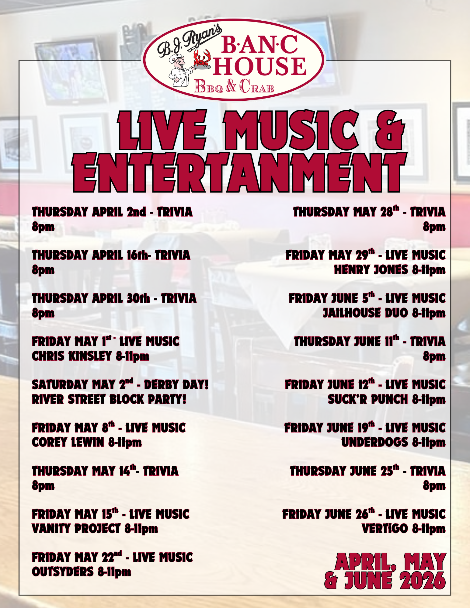 CHECK BACK FOR SPECIAL EVENTS INCLUDING LIVE MUSIC, HOLIDAY PROMOTIONS, FUNDRAISERS & MORE!